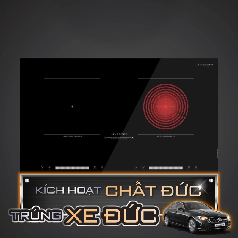 Dưới ánh đèn vàng ấm áp, bếp điện từ hồng ngoại Junger JG MTD-71 nổi bật với thiết kế hài hòa và sự kết hợp giữa bếp từ và bếp hồng ngoại. Thiết kế mang hơi hướng hiện đại, thể hiện định hướng thẩm mỹ và phong cách thiết kế theo tinh thần Đức.