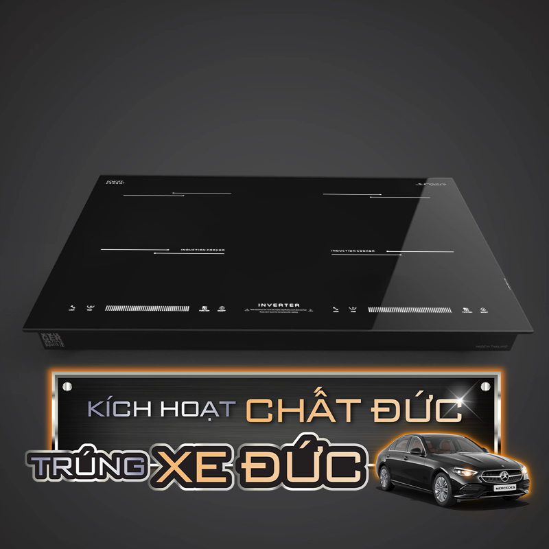 - Tổng công suất: 4400W, Vùng nấu trái: 2200W; Vùng nấu phải: 2200W