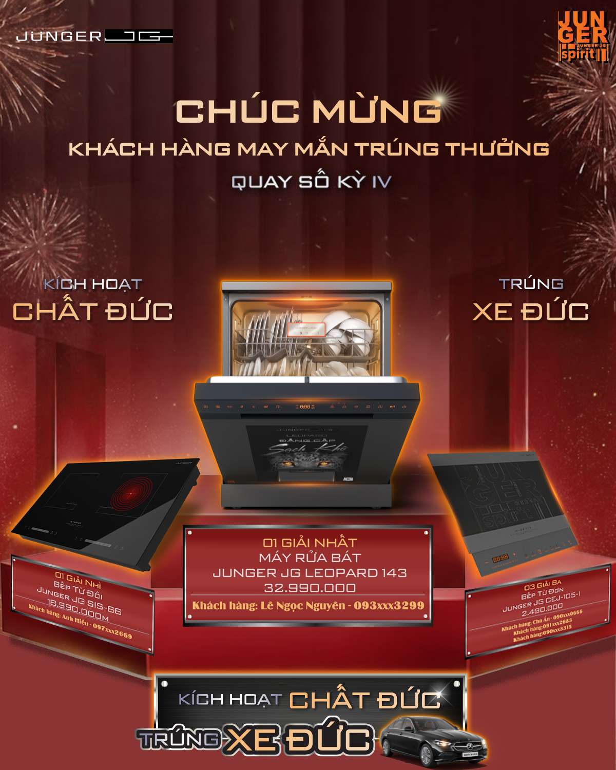 Junger JG vinh dự được thông báo những khách hàng đã vinh dự được nhận phần quà đặc biệt đến từ kỳ 4 của chương trình “KÍCH HOẠT CHẤT ĐỨC – TRÚNG XE ĐỨC”
