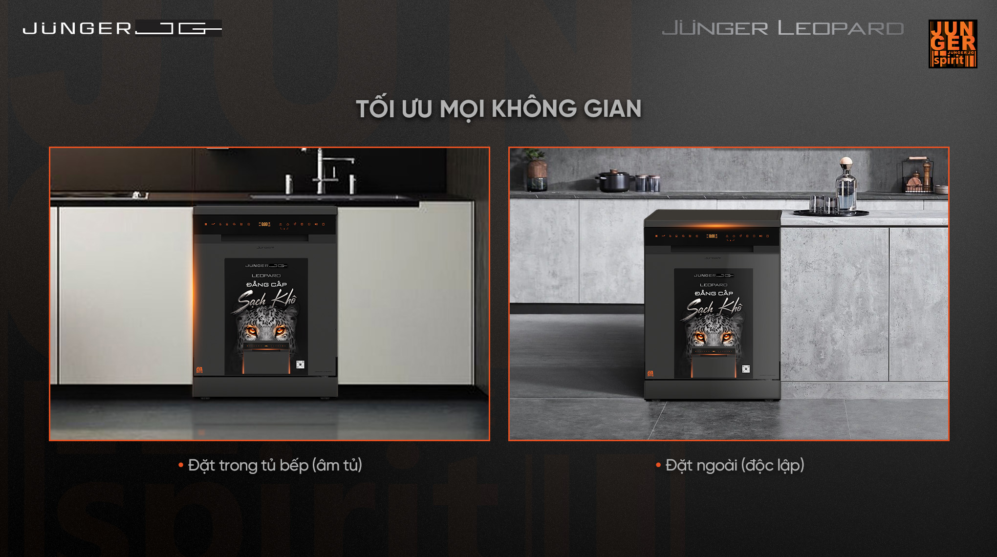 - Công nghệ sấy nóng Junger Super Dry Tech: sử dụng thanh gia nhiệt kết hợp lượng nhiệt tồn dư của nước nóng sinh ra trong quá trình rửa. Hệ thống quạt gió đối lưu hỗ trợ làm khô tăng cường cho toàn bộ chén bát tốt hơn giúp tiết kiệm năng lượng hiệu quả với công nghệ tái tạo năng lượng