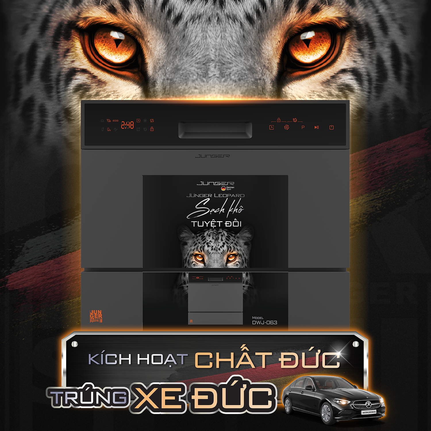 Máy rửa bát Junger Leopard DWJ-063 "Sạch khô tuyệt đối" thuộc dòng Junger Leopard báo xám thế hệ mới, là dòng máy rửa bát được cải tiến mạnh mẽ bởi những công nghệ Junger hiện đại và tính năng an toàn vượt trội.